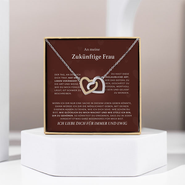 Eine Halskette mit ineinander verschlungenen Herzen steht für ewige Liebe und Verbundenheit. 💕