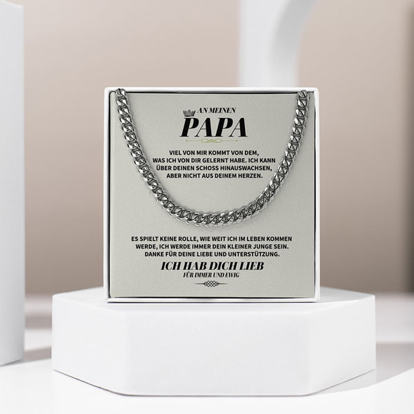 Schenken Sie ihm ein Geschenk, das für immer einen sentimentalen Wert haben wird – eine elegante Halskette mit einer persönlichen Liebesnote, die nur für ihn entworfen wurde. Lassen Sie die Halskette zum Symbol Ihrer Gefühle werden, die er jeden Tag am Herzen tragen wird.