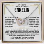 ICH KANN DIR NICHT VERSPRECHEN, DASS ICH FÜR DEN REST DEINES LEBENS HIER SEIN WERDE, ABER ICH KANN DIR VERSPRECHEN, DASS ICH DICH FÜR DEN REST MEINES LEBENS LIEBEN WERDE. WOHIN DICH DEINE REISE IM LEBEN AUCH FÜHREN MAG, SEI IMMER STARK UND MUTIG. VERTRAUE TIEF IN DEINEM HERZEN DARAUF, DASS DU SCHLAU GENUG BIST, UND ALLES ERREICHEN KANNST, WAS DU MÖCHTEST. WANN IMMER DIR DAS HERZ SCHWER WIRD, DENKE DARAN, WESSEN ENKELIN DU BIST.